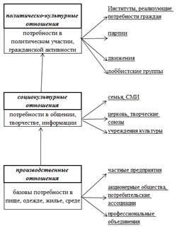 - становление гражданского общества зависит от степени развитости экономических и правовых отношений, действенности механизма общественного контроля за государственно-властными структурами;