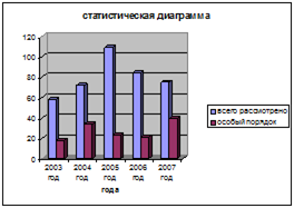 Приложение А. Статистическая диаграмма рассмотренных уголовных дел в Кологривском районном суде Костромской области за период с 2003 по 2007 гг.