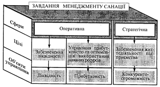Вирішальне значення для успішного проведення фінансового оздоровлення підприємства має організація ефективного менеджменту санації. Сутність менеджменту санації можна розглядати з двох позицій: інституціональної та з функціональної.