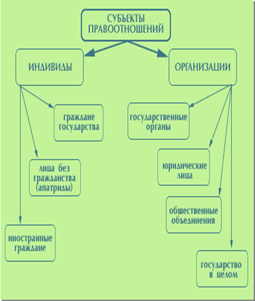 Таким образом, правоотношения — это индивидуализированная связь, которая возникает на основе правовых норм между гражданами и иными лицами в форме субъективных прав и юридических обязанностей и поддерживается принудительной силой государства. [38, с. 14].