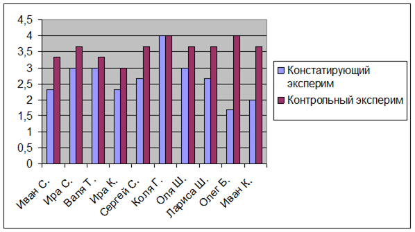 Согласно общепринятой методологии, эксперимент (тестирование) состоял из трех частей: констатирующей, формирующей и контрольной.