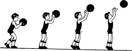 На первых порах при передаче мяча большинство детей старается толкать его обеими руками, широко разводя локти в сторону. В процессе обучения передачи мяча необходимо напоминать детям, что локти следует опустить около туловища; стараться бросать на уровне груди партнера; мяч следует сопровождать взглядом и руками.