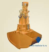 На экскаваторах с гидравлическим приводом устанавливают жестко подвешенные грейферы. Основное преимущество жестко подвешенного грейфера по сравнению с канатным заключается в том, что им можно создать необходимое давление на грунт при врезании, т. е независимо от массы грейфера эффективно разрабатывать плотные грунты.