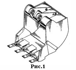 По сути, за последнее 30 лет, ковш не претерпел существенных конструктивных изменений. Некоторая эволюция прослеживается в изменении зуба ковша и способах его крепления. Если в самом начале в основном использовались вставные зубья, которые крепились в гнезда режущей кромки, зачастую выполненных как единая литая деталь, что существенно удорожало и утяжеляло ковш, (рис.1) то на сегодняшний день наибольшее распространение получили вильчатые зубья с болтовым креплением к режущей кромке для ковшей объемом до 0,3м3