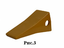 и для экскаваторов второй размерной группы (рис.2). А также коронки, надевающиеся на адаптер, приваренный к ковшу и фиксирующиеся специальным штифтом (рис.3). Такая конструкция позволяет снизить металлоемкость и, соответственно, стоимость основного расходного элемента ковша.
