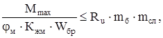 Проверка устойчивости плоской фермы деформирования двускатных клееных балок прямоугольного сечения, не имеющих закреплений из плоскости по растянутой от момента кромке выполняется по формуле: