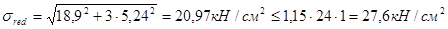 Прочность одного из расчетных сечений будет меньше прочности другого, поэтому достаточно выполнить расчет по менее прочному сечению. Установить расчетное сечение можно путем сравнения значений и :