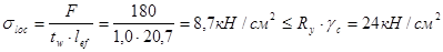 Проверка местной устойчивости поясов и стенки прокатных балок не требуется, поскольку она обеспечивается их толщинами.