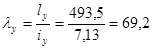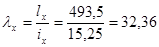 Находим соответствующую гибкость и определяем требуемые радиусы инерции сечения: