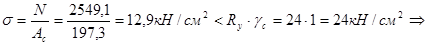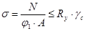 где коэффициент продольного изгиба стойки, определенный исходя из гибкости