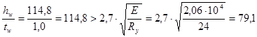 - для стенок центрально-сжатой колонны двутаврового сечения: