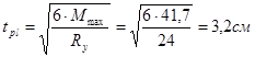 Толщина плиты определяется исходя из условия ее работы на изгиб: