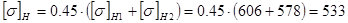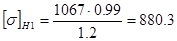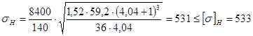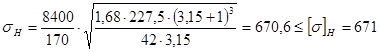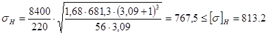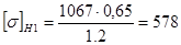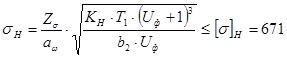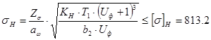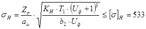 Допускаемое контактное напряжение для зубьев шестерни и колеса