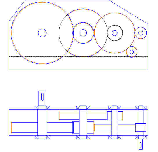 Редуктор выполнен по развернутой схеме, что обеспечивает большое передаточное отношение. Применение цилиндрической зубчатой передачи с косыми зубьями повышает плавность работы, увеличивает нагрузочную способность, уменьшает контактные напряжения и износ. Осевое смещение колес регулируется втулками.