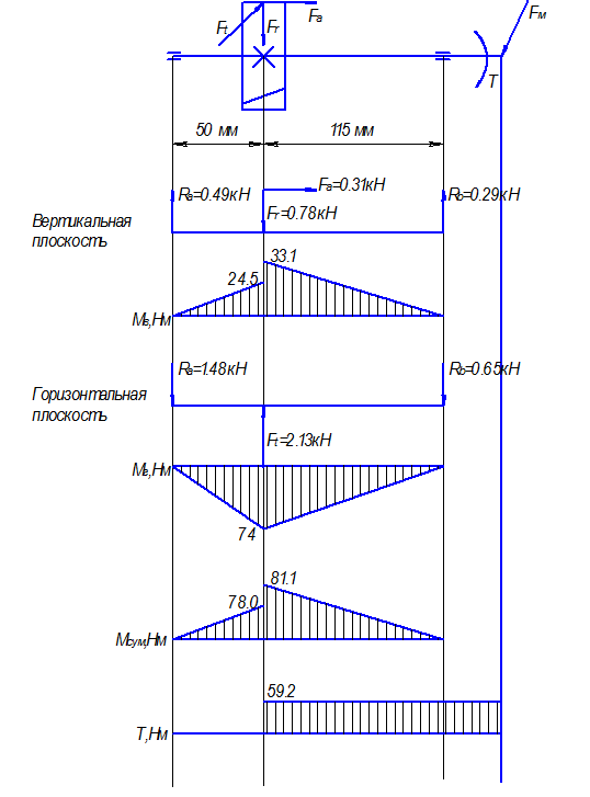 Условие усталостной прочности выполняется; окончательно принимаем диаметр вала d=50 мм.