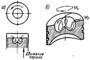 , то в вихревой камере, куда подается вся порция топлива, на режимах больших нагрузок создается обогащенная смесь. Естественно, здесь невозможно полное сгорание топлива. В результате воспламенения давление в вихревой камере повышается. Горящий заряд начинает перетекать во вторую основную полость камеры сгорания, выполненную в виде фасонной выемки на поршне (рис. 3, а), где сосредоточена значительная часть еще не использованного для горения воздуха. При правильном выборе формы и расположения обеих полостей камеры сгорания и горловины в основной полости камеры сгорания происходит быстрое и достаточно полное догорание топлива.