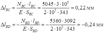 Абсолютное перемещения стержней ВС и BD предполагая их свободными в точке В.