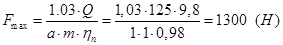 При малой грузоподъемности (Q<320кг) рекомендуется применять однократный (a=1) одинарный (m=1) полиспаст.