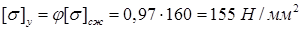 Так как , формула Эйлера не применима. Применяем формулу Ясинского.