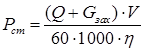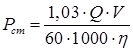 Мощность (кВт) при подъеме номинального груза весом Q(Н) с установившейся скоростью V (м/мин) – статическая мощность.