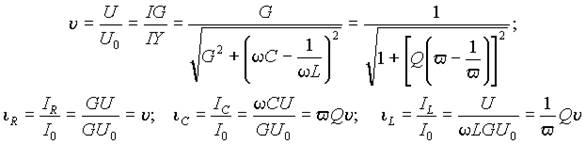 . Перейдем к относительным единицам в выражениях (16) и (18), приняв в качестве базовых значений напряжение на входе при резонансе и ток контура, выраженный через это напряжение. Тогда получим