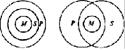 Отношения между терминами данного силлогизма могут быть представлены двояко, как это показано на рисунке. И в первом, и во втором случаях все М (тигры) входят в объем Р (млекопитающие) и все М входят также в объем S (хищники). Это соответствует информации, содержащейся в двух посылках силлогизма. Но отношение между объемами Р и S может быть двояким. Охватывая М, объем S может полностью входить в объем Р или объем S может лишь пересекаться с объемом Р. В первом случае можно было бы сделать общее заключение "Все хищники – млекопитающие", но во втором случае правомерно только частное заключение "Некоторые хищники – млекопитающие". Информации, позволяющей сделать выбор между этими двумя вариантами, в посылках не содержится. Значит, мы не вправе делать общее заключение. Силлогизм не является правильным.