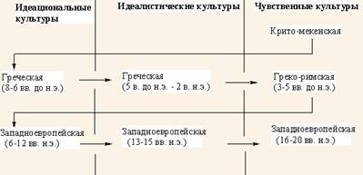 Рис. 2. Цикл культур в развитии западноевропейского общества, по П.Сорокину