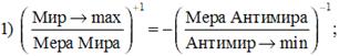 Данная рычажная формула отражают гармонию взаимоотношений самодостаточных миров и антимиров. Процессы взаимотрансформации миров и антимиров можно отразить, используя следующие рычажные уравнения