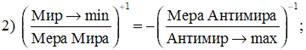 Это рычажное уравнение характеризует принцип оптимального саморегулирования миров, который в математике определяется как принцип максимина.