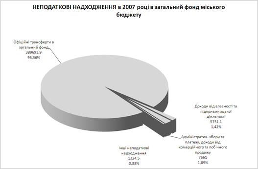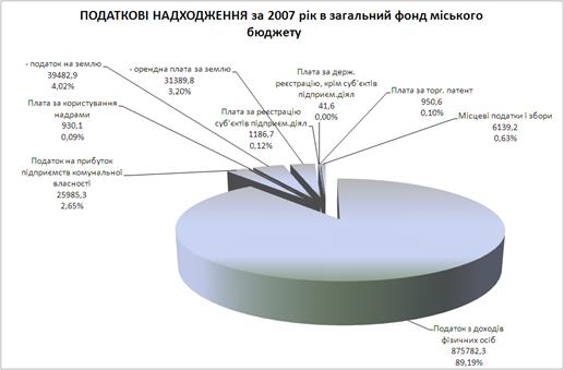 До загального фонду міського бюджету за 2007 рік надійшло власних доходів у сумі 996625,1 тис.грн., а з урахуванням міжбюджетних трансфертів 1386319,0 тис.грн., що становить 102,5% та 99,6% відповідно до плану звітного періоду.