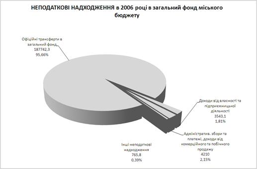 У 2006 році при плановому показнику 1 396 941,8 тис.грн. до бюджету надійшло 1 351 588,0 тис.грн., що склало –45 353,8 тис.грн. відхилення від плану, що склало 96,8%. При цьому дотаційні та субвенційні трансфери в міський бюджет у 2006 році склали 187 742,3 тис.грн. в загальний фонд та 153 663,5 тис.грн. в спеціальний фонд, тобто усього 32,04 % від загального обсягу доходів міського бюджету.