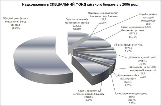 Рис. 3.8. – Структура надходжень в спеціальний фонд міського бюджету м.Дніпропетровська у 2006 -2007 роках