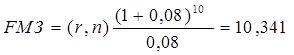 S = А • FM3 (r %, n) • (1 + r);