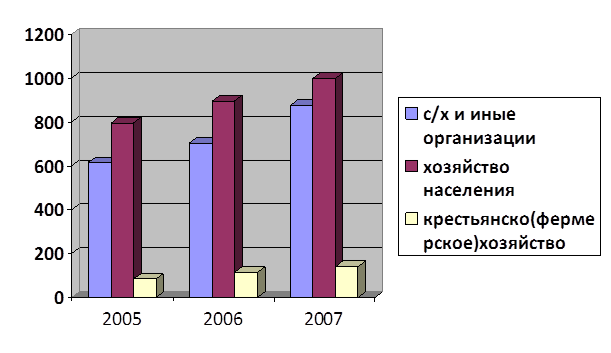 Изучив таблицу, мы видим, что сельскохозяйства и иные организации в 2005году составляла денежная масса 615,6млрд.руб.,а в 2007году 875,9млрд.руб., следовательно за 2а года денежная масса возросла на 260.3млрд.руб.Хозяйство населения в 2005году составляло 794,5млрд.руб.,а в 2007году составило 1001,1млрд.руб.,из этого следует, что денежная масса хозяйства населения возросла на 206.6млрд.руб.за 2а года. И наконец крестьянское (фермерское) хозяйство за 2а года возросло на 56.2млрд.руб. На основание данных таблицы, следует, что денежная масса сельско хозяйственной промышленности с каждым годом возрастает, причём во всех категориях хозяйств. Также в данной таблице показана денежная масса хозяйства всех категорий: в 2005году она составляло 1494,6, в 2006году 1711,3 и наконец в 2007году 2017,2.