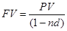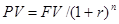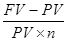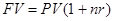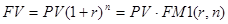 Одноразовый платеж в данный момент "PV" преобразуется с учетом процентной ставки в одноразовый платеж через "n" интервалов "FV".