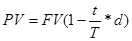 При учете векселей используется формула (2.2.1), являющаяся обратной по отношению к формуле (1.2.1). В ней t - это число дней, которые остались до конечного срока учета векселя. Определяя продолжительность финансовой операции, принято считать за один день выдачи и день погашения ссуды.