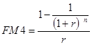 FM1 (r,n) = (1+r)n – фактор будущей стоимости текущего капитала, множитель наращения сложных процентов или мультиплицирующий множитель. Табличные значения множителя наращения FM1 (r,n) приведены в Таблице 1 Приложения.
