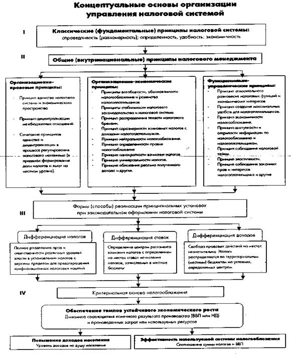 Наряду с перечисленными классическими выделяются принципы, характеризующие общность признаков, вытекающих непосредственно из исследования внутренних свойств системы налогообложения. Они определяют функционирование всех сфер общественной и экономической деятельности и в нашем исследовании выступают в качестве общих принципов налоговой системы. Общие принципы основаны на таких связях, которые позволяют определить место и роль отдельных группировок в структуре целого. На основе этих принципов создаются налоговые концепции и задаются условия действия налогового механизма применительно к типу государства, политическому режиму и возможностям экономического базиса, сложившимся социальным условиям развития.