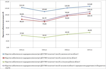 аналіз ефективності роботи пенсійної системи України у 1991 2008 роках та особливостей функціонування пенсійної системи в Дніпропетровському регіоні у 2005 2007 роках;