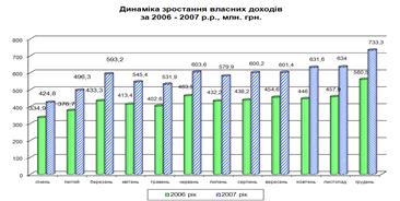 Рис.В.1. – Динаміка щомісячного зростання надходжень власних доходів в Пенсійний Фонд України у Дніпропетровській області у 2006 2007 роках