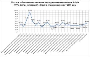Рис.В.5. Порівняльна таблиця забезпеченості коштами в Пенсійному Фонді України у Дніпропетровській області у 2006 році (сільські райони області)