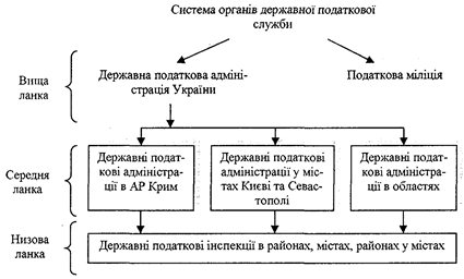 – державні податкові інспекції у районах, містах, районах у містах [8, 10].