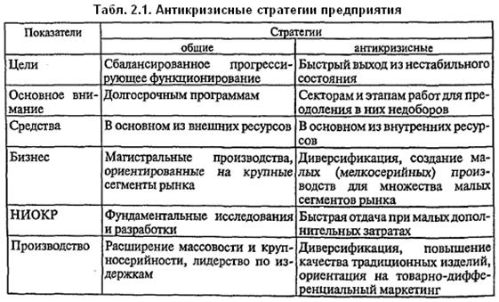 Это формирует антикризисную стратегию как особый программный документ, содержащий, наряду с целями и ресурсами, также формы и порядок действий управленческих подразделений в высокодинамичной среде (формулы поведения в различных ситуациях, управленческие алгоритмы, запрограммированные решения).