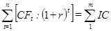 Если проект предполагает не разовую инвестицию, а последовательное вложение финансовых ресурсов в течении нескольких лет формула расчета модифицируется: