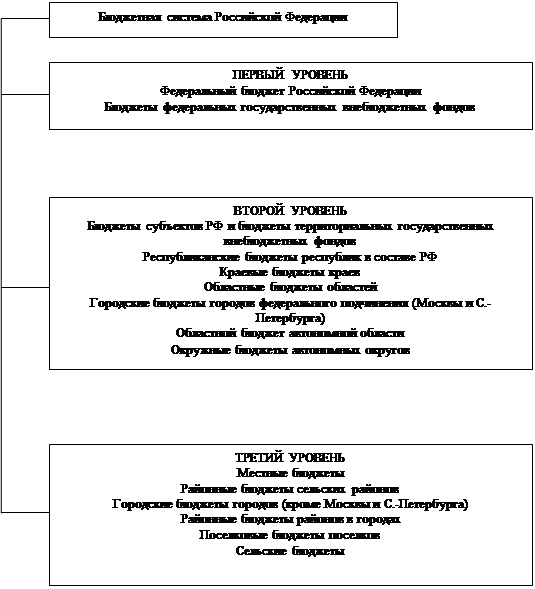 Статья 10 Бюджетного кодекса Российской Федерации (Федеральный закон от 31 июля 1998 г. № 145-ФЗ) закрепляет в России трехуровневую бюджетную систему: