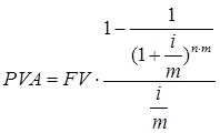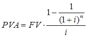 Если вынести общий множитель FV за скобки и свернуть сумму факторов дисконтирования по формуле суммы членов геометрической прогрессии, получим следующее выражение: