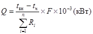 Определить тепловой поток через стены здания общей поверхностью F(м2