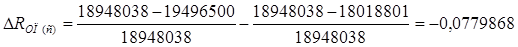 3) проверим соответствие общего изменения рентабельности продаж и суммарного влияния факторов. Изменение рентабельности продаж DRO
