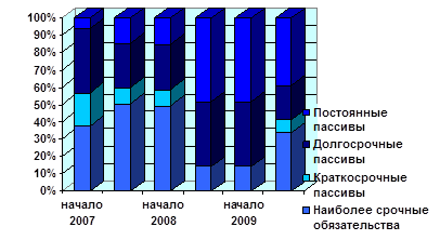В результате проведенных расчетов также можно сделать вывод, что на конец 2009 года предприятие находится на грани зон критического и допустимого рисков, т.к. у предприятия имеется относительно высокий риск потери финансовой устойчивости. Если этот вид риска не будет своевременно нейтрализован, предприятие теряет возможность генерирования необходимого уровня прибыли (вследствие возрастания стоимости привлекаемого капитала), а также темпы своего устойчивого роста в предстоящем периоде. Риск снижения финансовой устойчивости относится к так называемым структурным рискам предприятия, так как он вызывается в первую очередь несовершенством структуры формирования операционных активов и капитала. Поэтому основным содержанием процесса управления риском снижения финансовой устойчивости предприятия выступает оптимизация состава внеоборотных и оборотных активов, с одной стороны, а также соотношения собственного и заемного капитала, с другой.