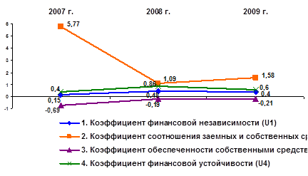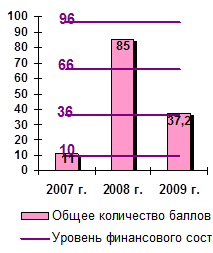 К концу 2008 года финансовое состояние предприятия улучшилось и стало более устойчивым. Эта ситуация сопряжена с тем, что в 2008 году увеличились долгосрочные заемные источники. Финансовые показатели довольно близки к оптимальным, но по отдельным коэффициентам допущено определенное отставание. Предприятие рентабельное, находится в зоне допустимого риска. Но в 2009 году в связи с финансовым кризисом финансовое состояние предприятия вновь ухудшилось. Для того чтобы сохранить возможность восстановления равновесия, предприятию необходимо пополнить собственный капитал и увеличить собственные оборотные средства за счет внутренних и внешних источников, обоснованно снизить сумму запасов и затрат, ускорить оборачиваемость капитала в оборотных активах.